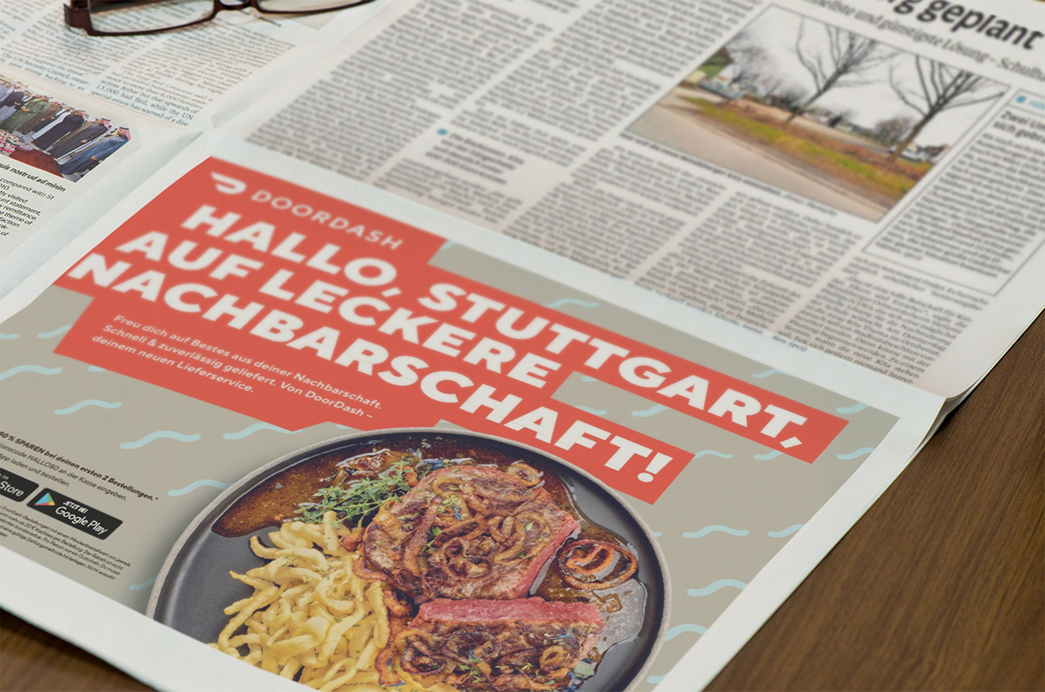 A campaign to introduce the US delivery service DoorDash in Stuttgart, Germany.
